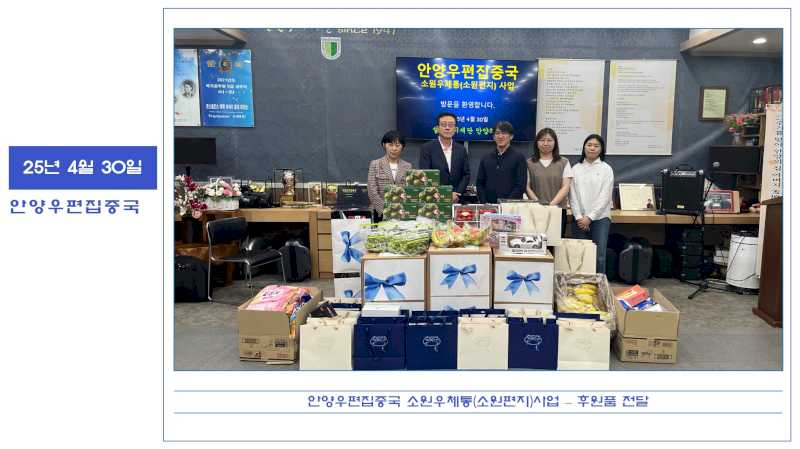 안양우편집중국에 소원우체통(소원편지) 사업으로 아이들을 위해 후원품을 전달해주셨습니다.