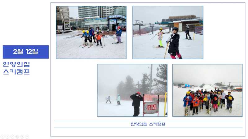 매년 아이들이 스키캠프를 손꼽아 기다리는데 그동안 갈고 닦은 실력으로 안전하고 재미있는 스키캠프 되었습니다.