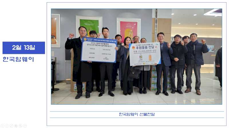 2025년 2월 13일 한국암웨이 선물전달 페이지 정보 작성자 운영자 댓글 0건 조회 742회 작성일 25-03-13 14:22 본문 한국암웨이에서 영양제와 바디로션 후원해주셨습니다. 목록 이전글2025년 2월 18일 한국암웨이 요리수업(밤티라미슈) 25.03.13 다음글2025년 2월 12일 스키캠프 1차(웰리힐리파크 스노우파크) 25.03.13 댓글목록 댓글목록 등록된 댓글이 없습니다.