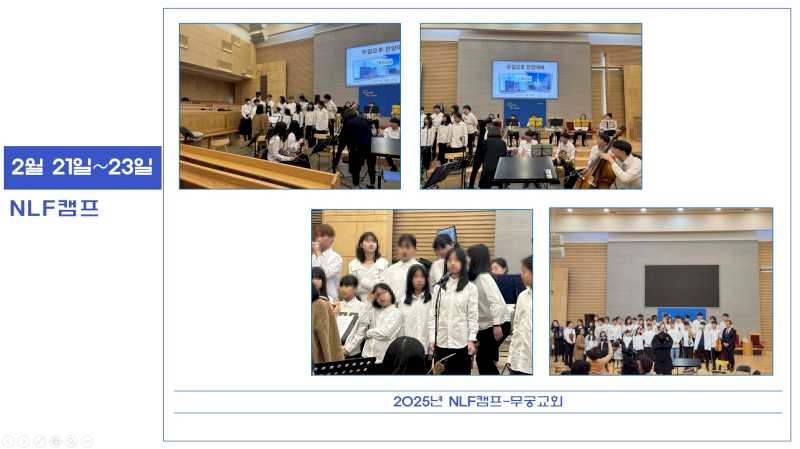 2월 21일~23일까지 2025년도 NLF음악캠프를 무궁교회에서 진행하였습니다.