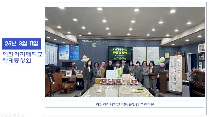 2025년 3월 11일 이화여자대학교 약대동창회 후원방문(딸기, 간식 등), 3월 일정공지