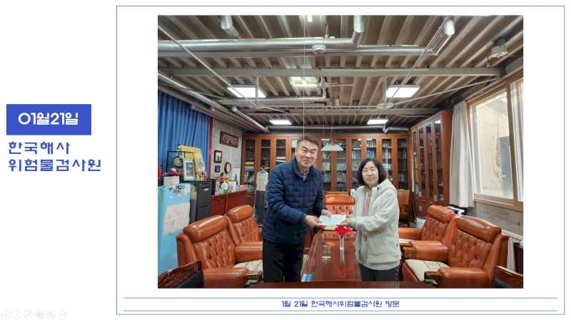 2025년 1월 21일 한국해사위험물검사원 후원방문 페이지 정보 작성자 운영자 댓글 0건 조회 993회 작성일 25-01-29 13:49 본문 한국해사위험물검사원에서 후원방문 해주셨습니다. 목록 이전글2025년 1월 22일 지디씨주식회사 후원방문 25.01.29 다음글2025년 1월 21일 법무부 후원방문 25.01.29 댓글목록 댓글목록 등록된 댓글이 없습니다.